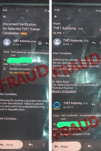 The TVET Authority wishes to alert members of the public to a fraudulent recruitment scam currently in circulation.